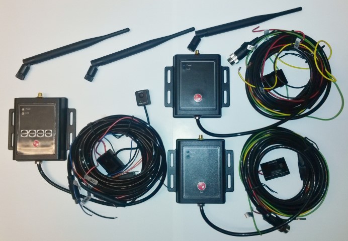 4 kanals digital trådløs mottager og 2 st digitale sendere (1 kanal/sender) for trådløs overføring av kamerabilde fra eksempelvis tilhenger eller kran. 11-32 Volt.