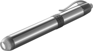 Praktisk pennficklampa av aluminium med en ljusstark 5 mm LED. Inklusive ett AAA/LR03-batteri.