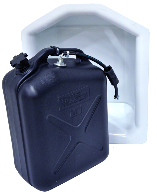 Till KGKs serie av framstamsmonterade inbyggnadsboxar hör även en 25 liters bränsletank som framför allt kan blir aktuell när det är fristående släp och trailers som ska värmas upp.
