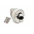 Bordgenomföring i rostfritt stål. Tänkt att användas på båtar med negativ akter och därför uttvändigt försedd med ett kort rör.