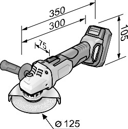 Batteridriven vinkelslip 18,0 V, 125mm, levereras med två batterier 5Ah och laddare i väska