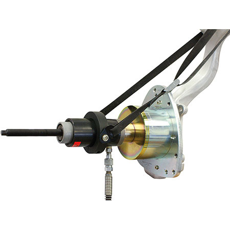 Hjullagerverktyget KL-0041-721 möjliggör snabb och problemfri demontering och montering av hjulnavet och demontering av hjullagerhuset vid tvådelade kompakthjullager om du har tillgång till hydraulcylinder KL-0040-2500, spännmutter KL-0039-1920-4, dragspindel KL-0039-1920-1 och hållaradaptrarna KL-0039-1002 och KL-0039-1003. Axeltappen behöver inte demonteras.