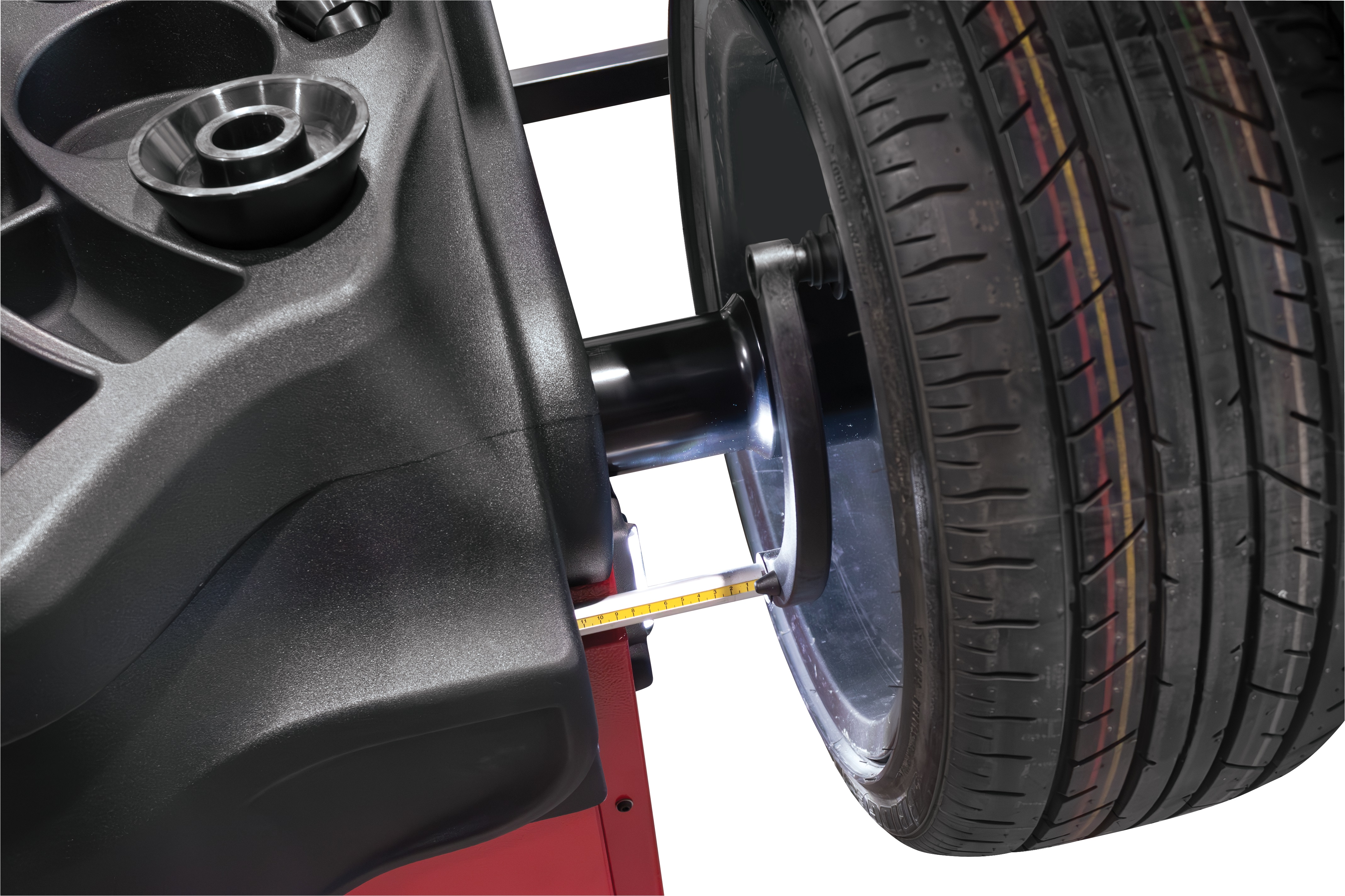 Maskinen är utrustad med Sonar för att kunna läsa av Run out på både fälg och däck. Sonar för avläsning av fälgbredd. Maskinen är också utrustad med en peklaser som visar exakt var vikterna ska placeras.