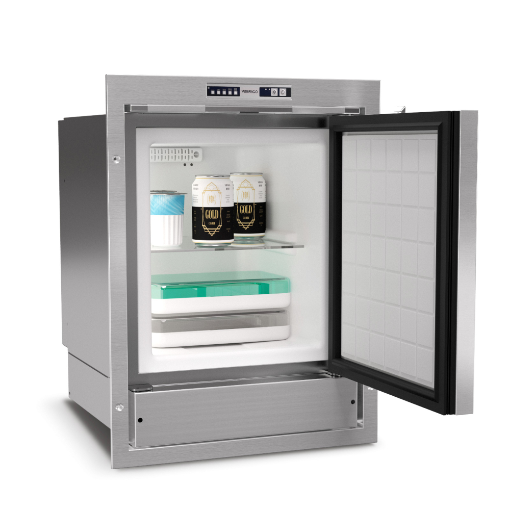 Mångsidigt kyl-/frysskåp i rostfritt stål från CFR OCX2-serien med en total kapacitet på 24 liter och extern kylmodul - perfekt för installationer där intern ventilation inte är möjlig.