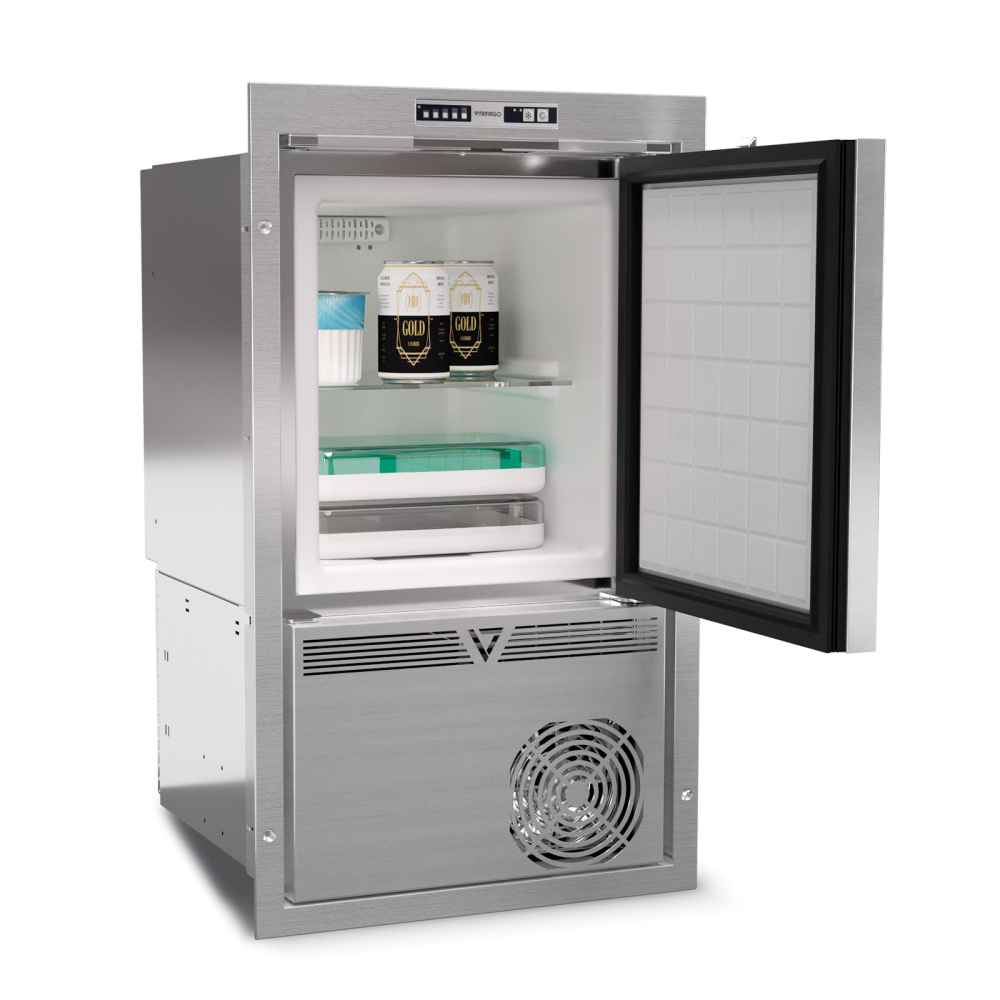 Kompakt kyl-/frysskåp i rostfritt stål från OCX2-serien med en total kapacitet på 24 liter och en vikt på 24 kg. Kylaggregatet är placerat invändigt, vilket gör enheten idealisk för installationer med begränsat utrymme.